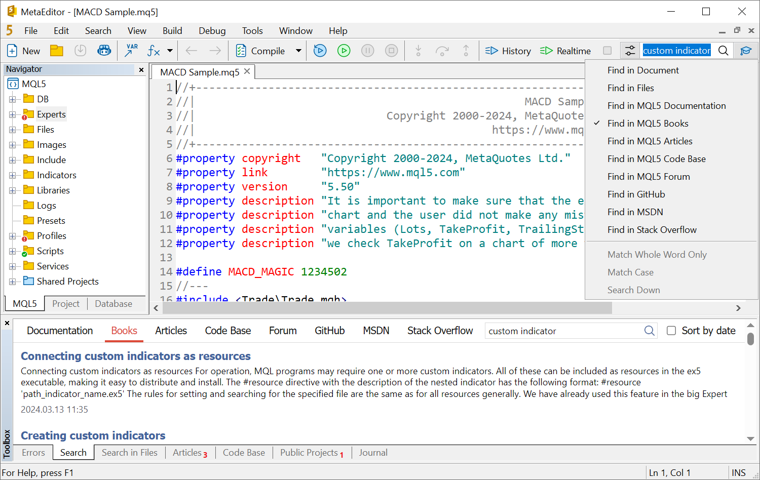 - 添加对MQL5算法交易的神经网络一书内容的搜索。新选项与之前出版的交易者MQL5编程一书出现在同一部分。