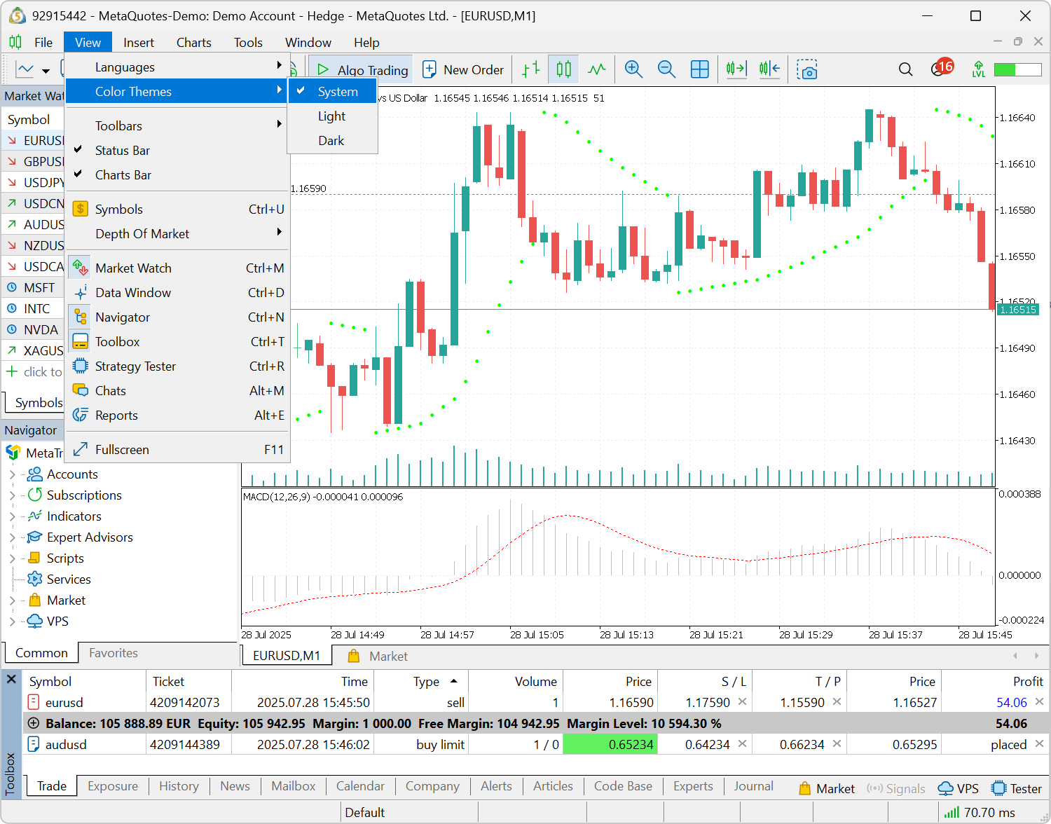 - 增加了根据 Windows 设置自动应用浅色或深色主题的功能。要启用此功能,请选择新选项:查看 \ 颜色主题 \ 系统。每次平台启动时,它都会检测到您的系统主题并相应地进行调整。